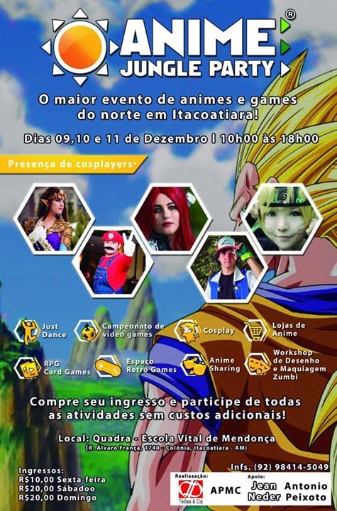 Cosplayers do anime jungle party. O maior evento voltado a cultura pop e japonesa da regiao norte o anime jungle party ganhara uma edicao especial no amazonas shopping em manaus a partir desta terca feira 29 ate 10 de setembro. Comemoracao de 10 anos do anime jungle party em manaus.